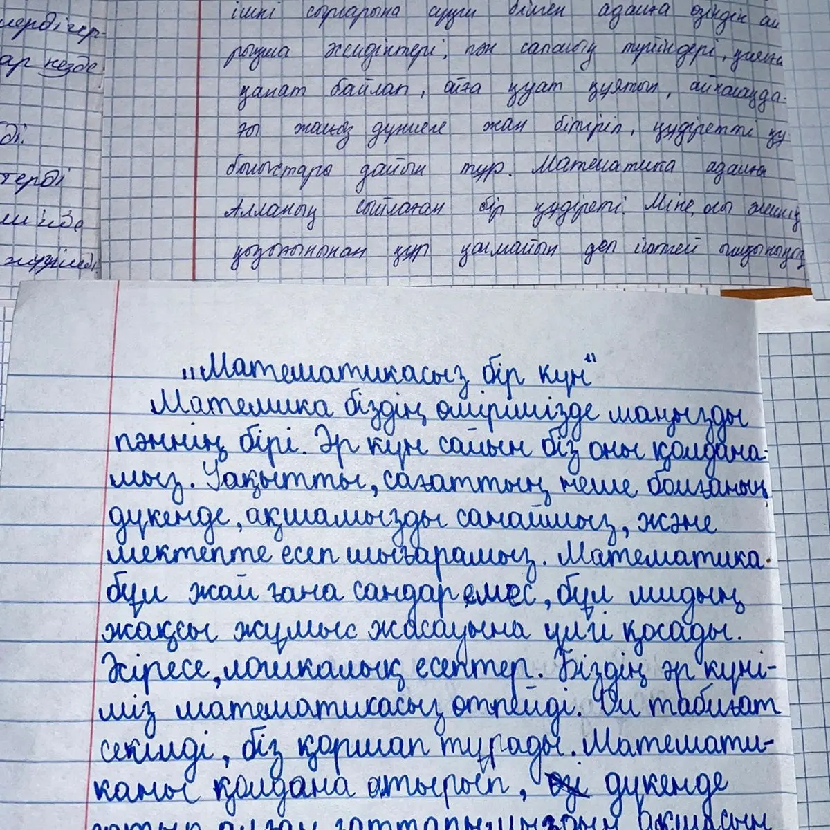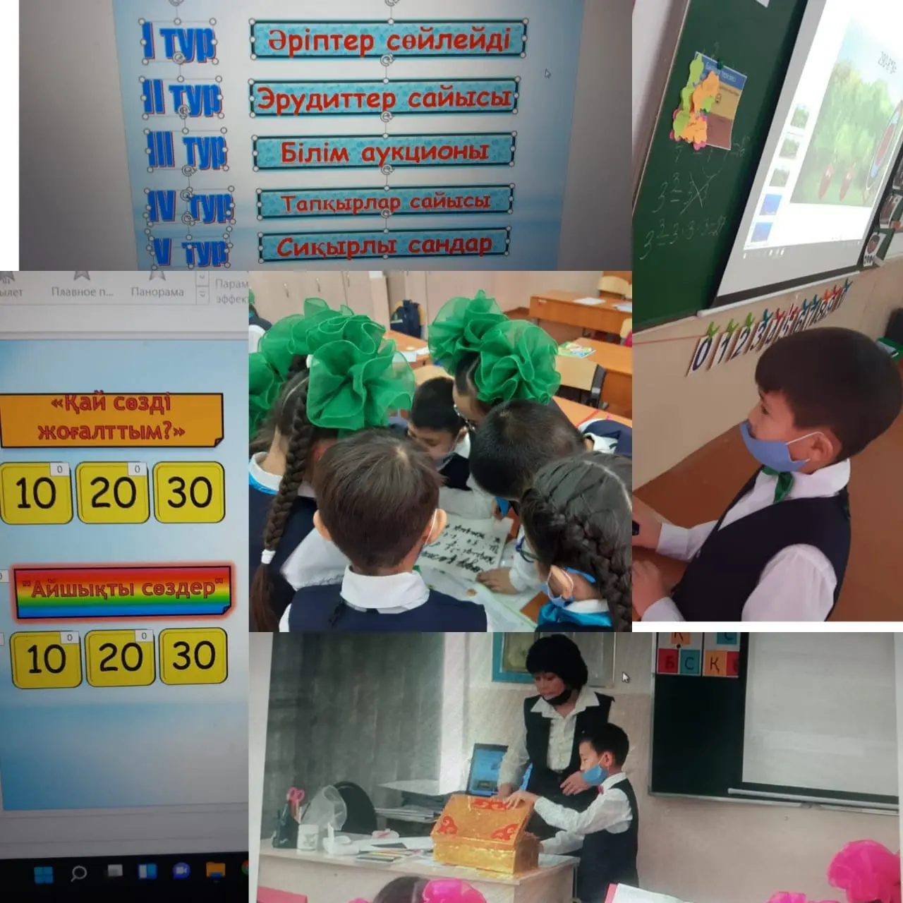 "Математика айналамызда "атты математикалық сауаттылық апталығының екінші күні математика пәні мұғалімдері Ибраева Е.А және Смайлова Г.К ұйымдастыруымен 9-10 сыныптар арасында "Математикасыз бір күн"атты эссе жазу және "Менің өмірімдегі математика"атты шығармашылық жұмыстар байқауы өткізілді.Байқауда 10 сынып оқушылары 50-60 сөзден құралған эссе жазса,9 сынып оқушылары Жақсылық А,Күзенбаев А,Өмірәлі Б,Мұхамединова Н,Тлеубаев Ә,Төлеген А өздерінің дайындап әкелген шығармашылық жұмыстарын қорғады.Бастауыш сыныптарында оқушылардың ойлау қабілетін,ой ұшқырлығын,оқуға ынтасын арттыру мақсатында 3-4 сынып оқушылары арасында "Мен математикамен доспын" атты танымдық сайысы өткізілді.
