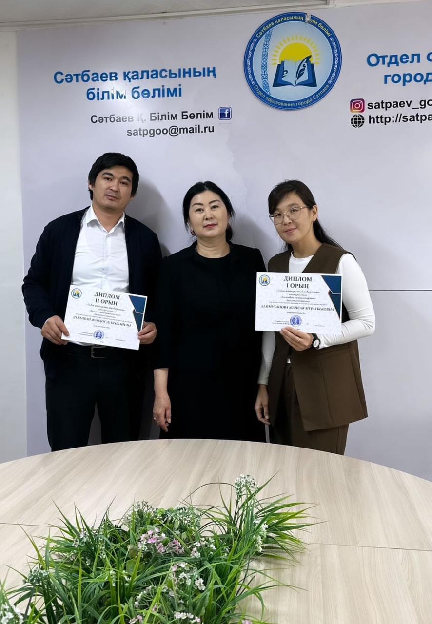 І дәрежелі дипломмен марапатталып, облыстық кезеңге жолдама алған педагог-зерттеуші ағылшын тілі пәнінің мұғалімі Баймуханова Жансая Муратбековна.