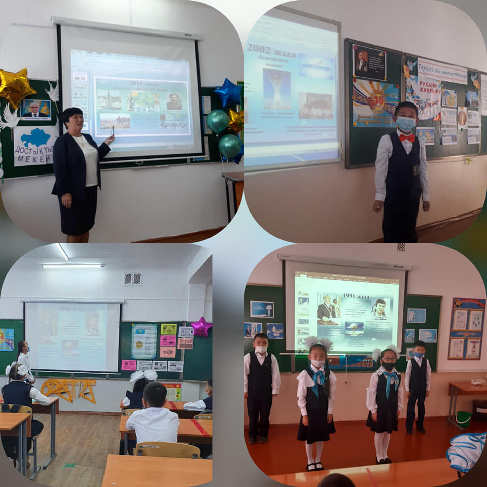 15 қыркүйек мектебімізде Қазақстан Республикасының Тәуелсіздігіне 30 жыл толуына орай "Тәуелсіздік жетістіктері" тақырыбында республикалық бірыңғай сынып сағаттары өткізілді.