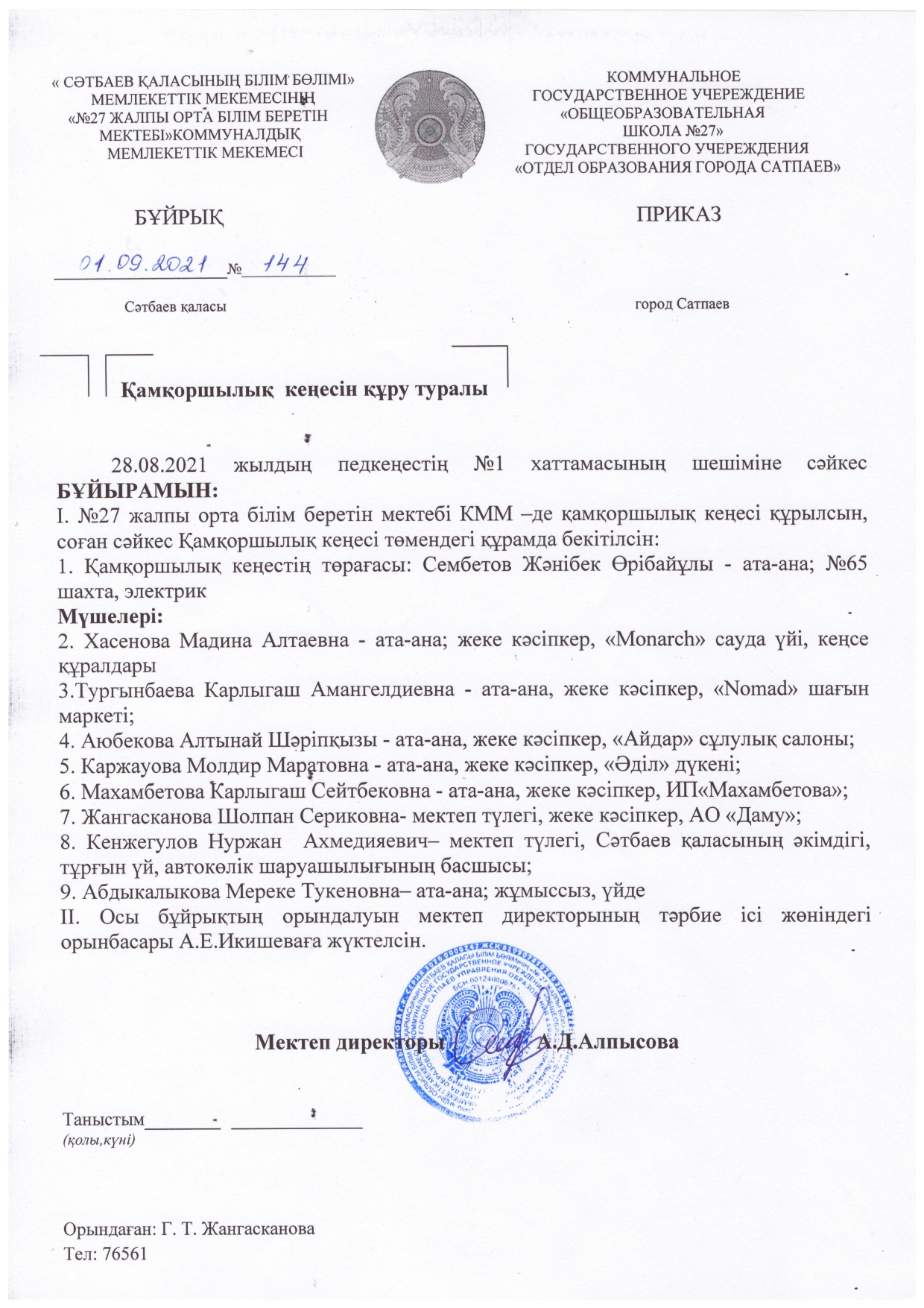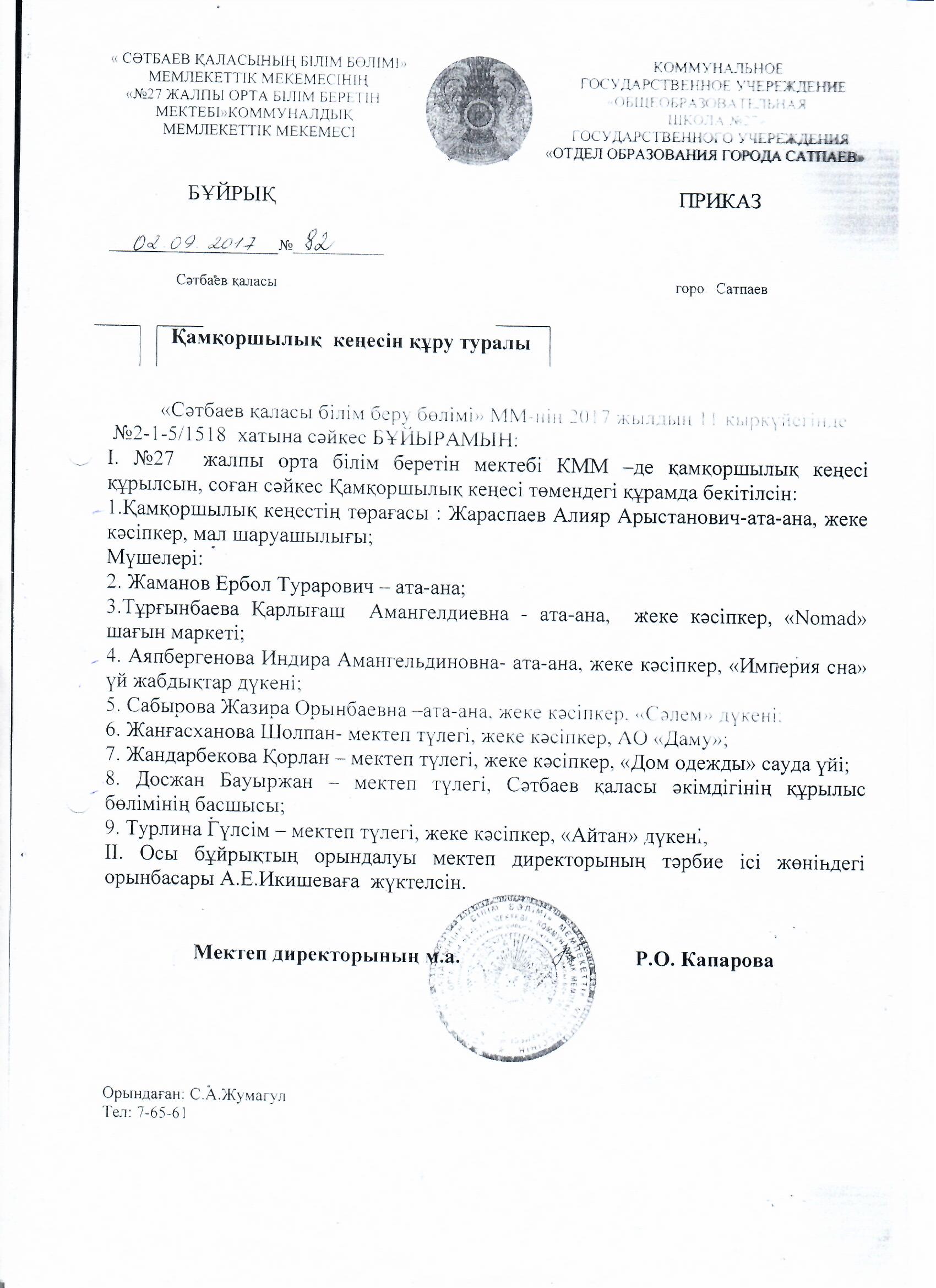 Ұлытау облысы білім басқармасының Сәтбаев қаласы білім бөлімінің "№ 27 жалпы білім беретін мектебі" коммуналдық мемлекеттік мекемесі