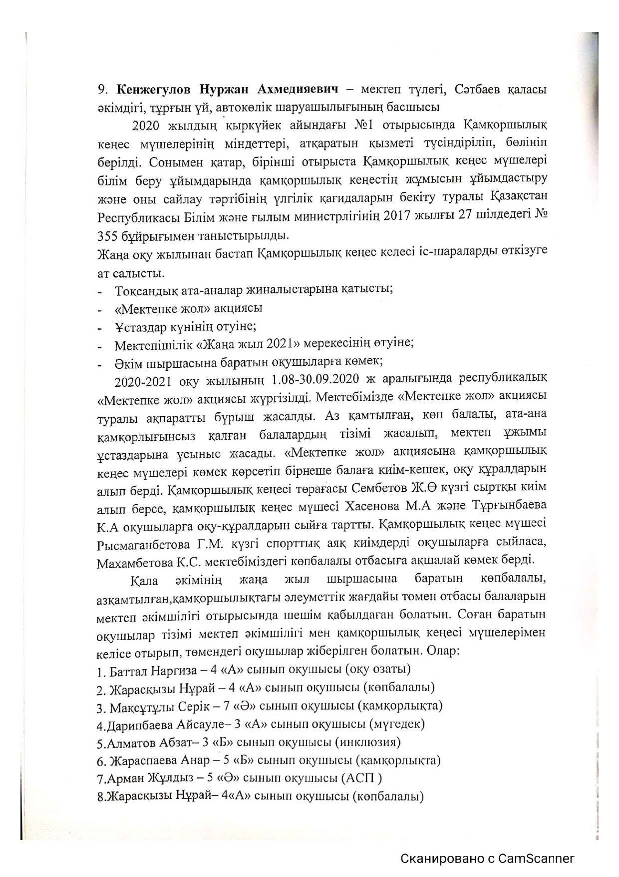 Лагерьлерде демалуы үшін құжаттар қабылдау