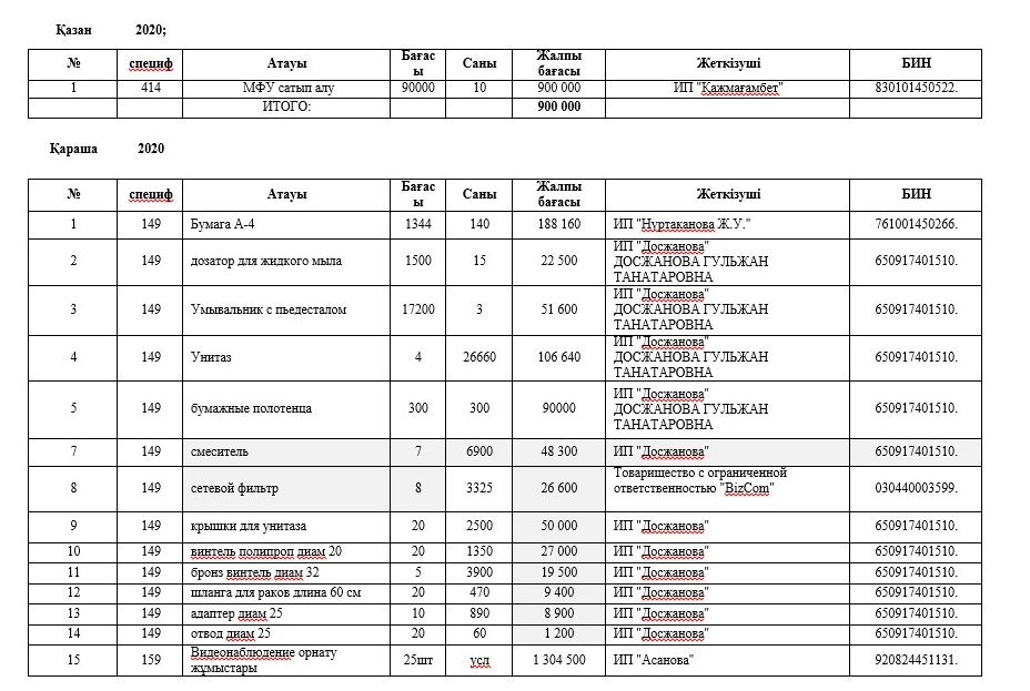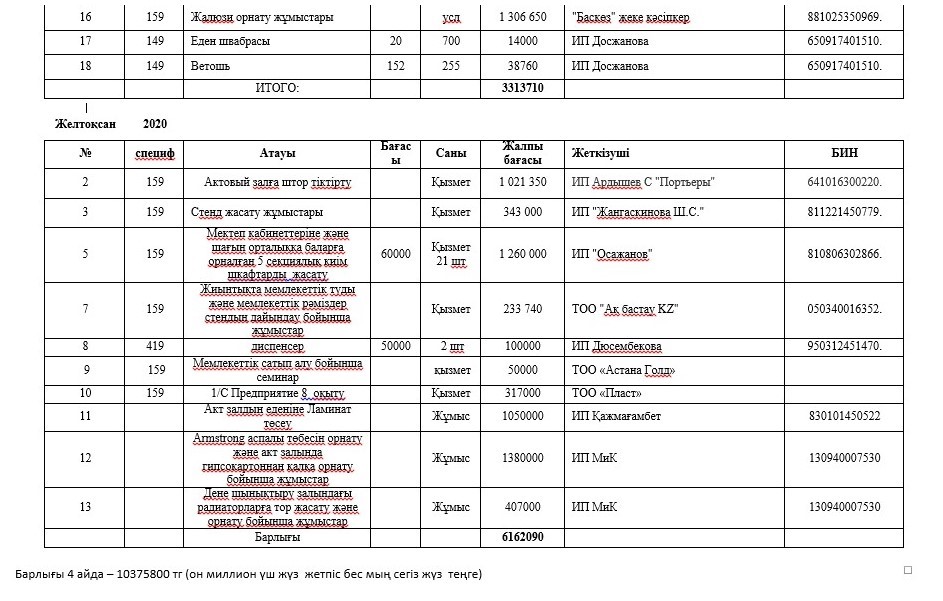 Мектептің үздіксіз жұмысым қамтамасыз ету үшін, жаңа 2021 жылдан бастап мемлекеттік сатып алу порталында келесі шарттар жасалды: