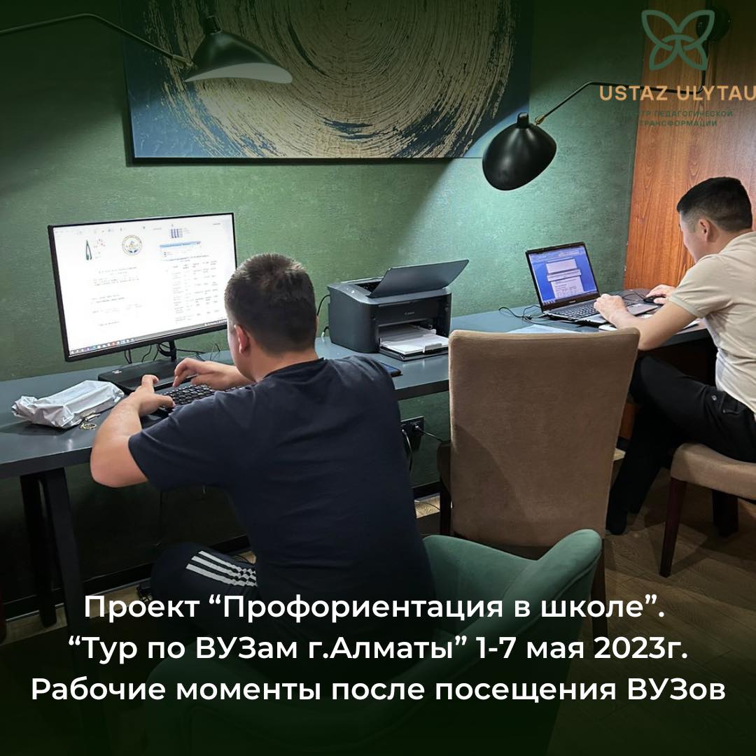 "Мектепте кәсіптік бағдар беру", "Алматы қаласының жоғары оқу орындары бойынша Тур" жобасы кезіндегі қатысушылардың жұмыс сәттері.