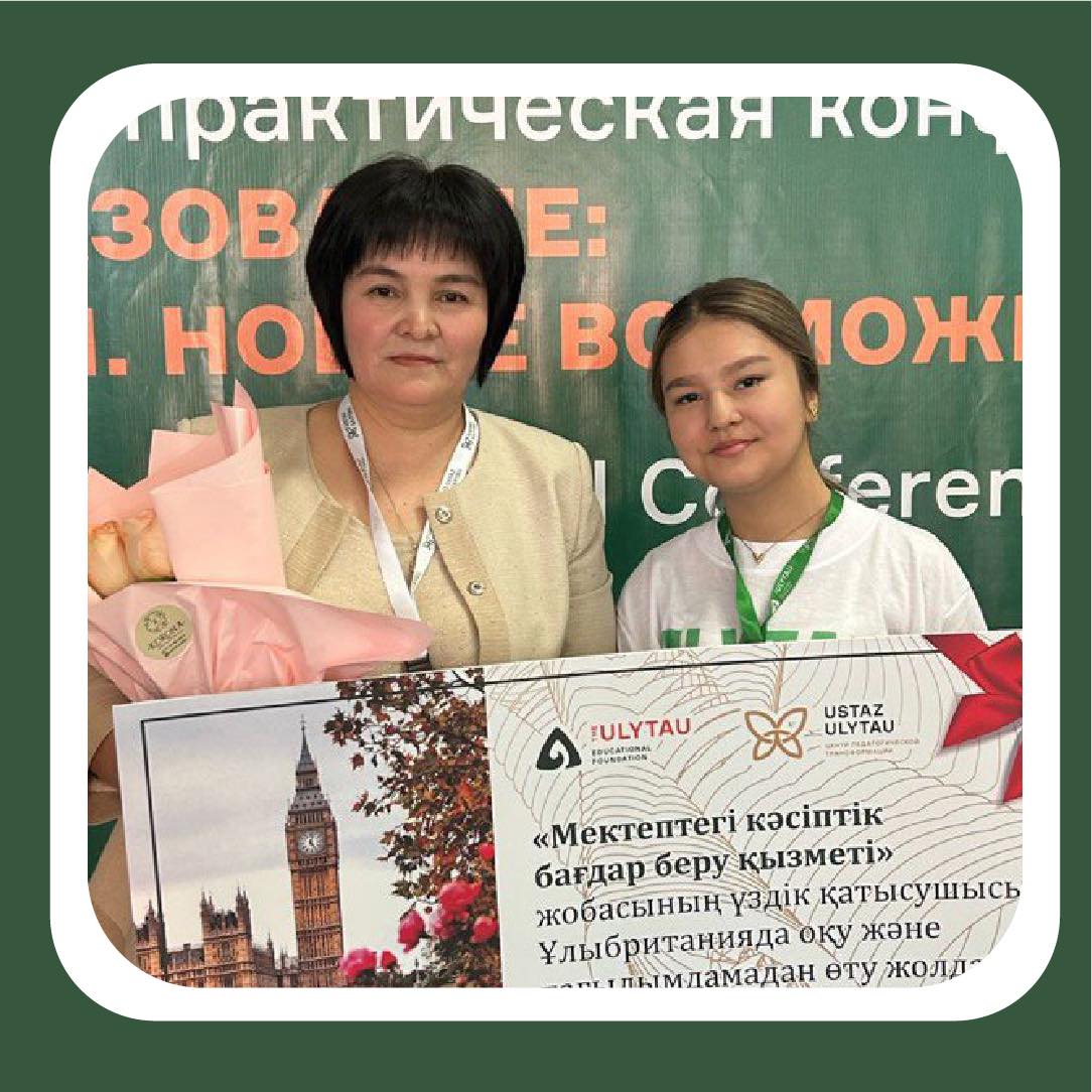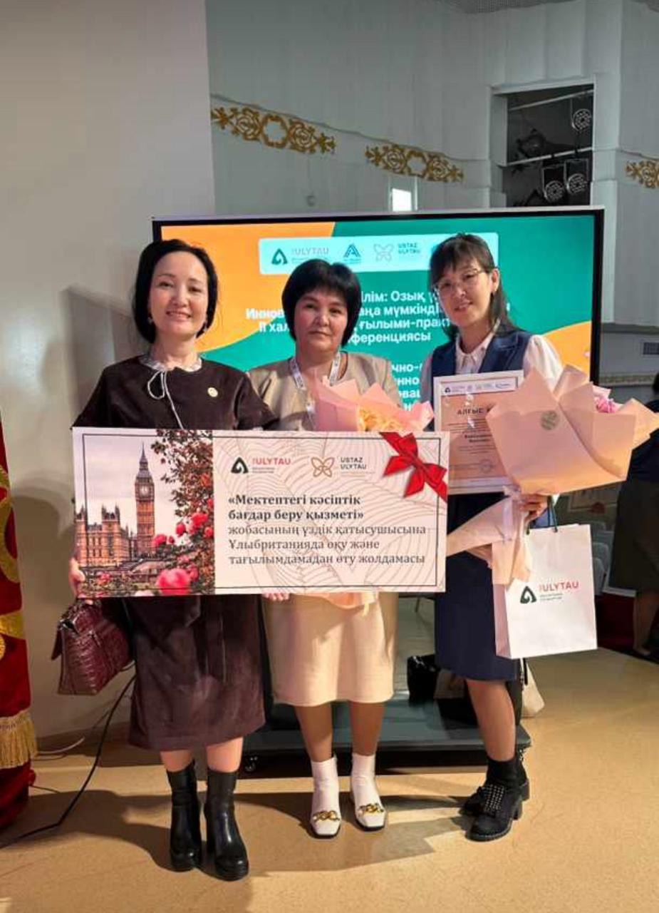 Қаныш Имантайұлы Сәтбаевтың 125 жылдығына орай өткізілген ІІ-ші халықаралық ғылыми-практикалық конференциясының қорытындысы бойынша Раис Ақбөпе Қодашқызы “Мектептегі кәсіптік бағдар беруші” жобасының Ұлыбританияда оқу және тағылымдамадан өту жолдамасын алды! Әріптестерімізді шын жүректен құттықтаймыз! Алар асуларыңыз көп болсын! Центр педагогической трансформации Ustaz Ulytau