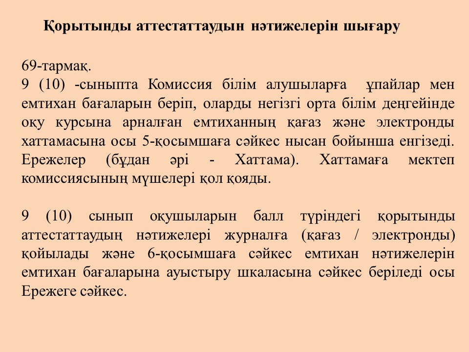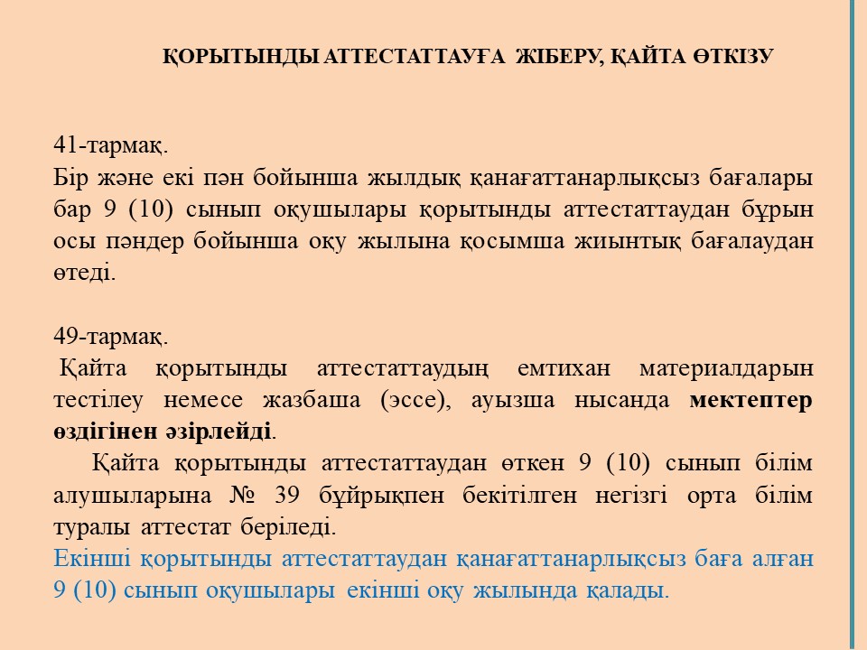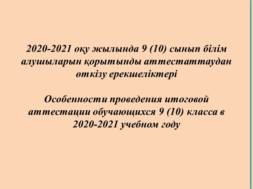 2020-2021 оқу жылында 9 (10) сынып білім алушыларын қорытынды аттестаттаудан өткізу ерекшеліктері